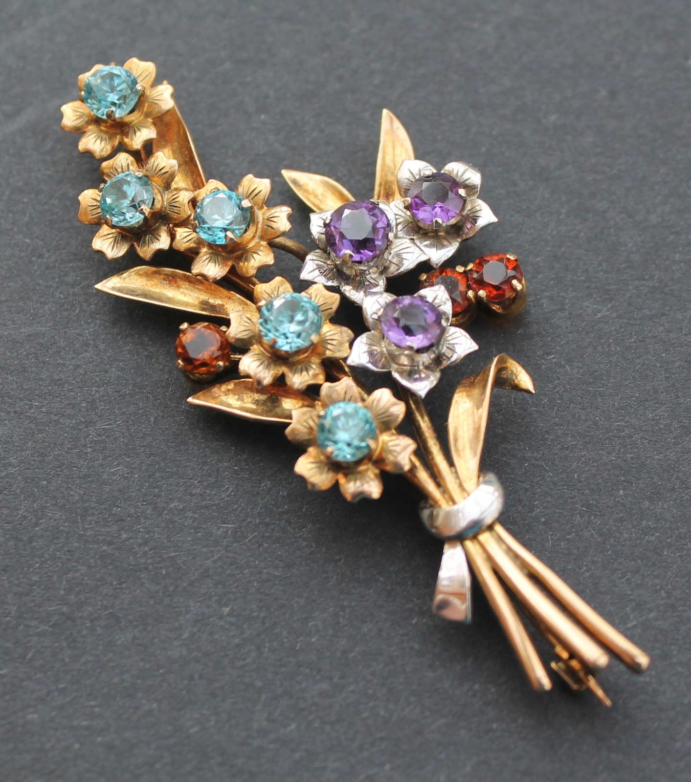 Vintage 9ct Gold & Gem Set Flower / Bouquet Brooch, C&F, Birmingham 1978