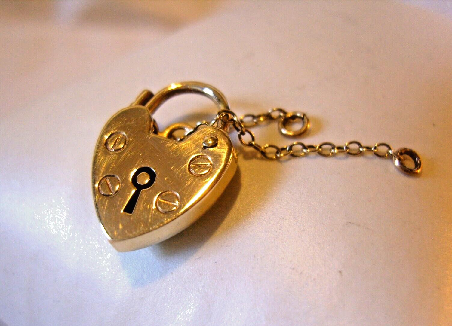 Vintage 9ct Gold Love Heart Padlock & Safety Chain For A Bracelet Sheffield Hm