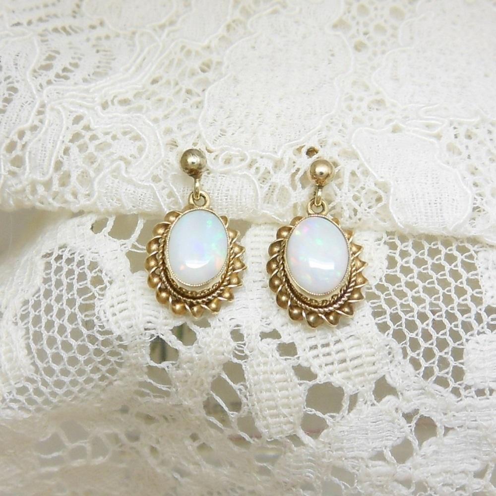 Vintage 9ct Gold Opal Drop Earrings with Rope Twist Detail