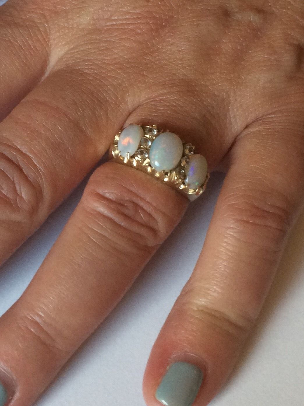 Vintage 9ct Gold & Opal Ladies Dress Ring 375 Victorian Design Size N