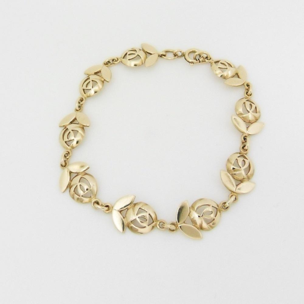 Vintage 9ct Gold Stylised Flower Design Bracelet 7" Long