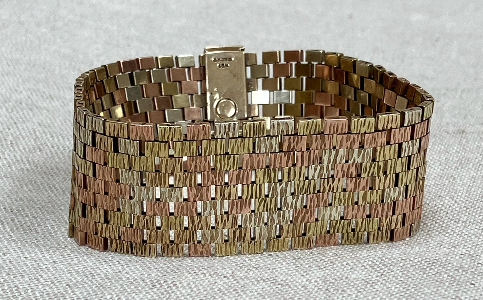 Vintage 9ct Tri Gold Brick Link Wide Bracelet
