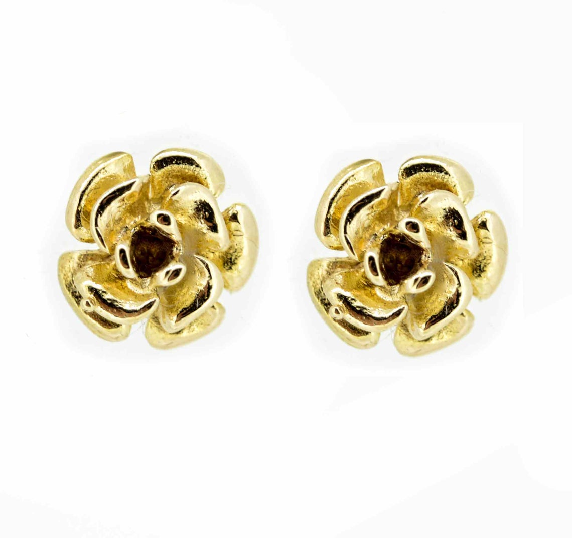 Vintage 9ct Yellow Gold Flower Rose Stud Earrings
