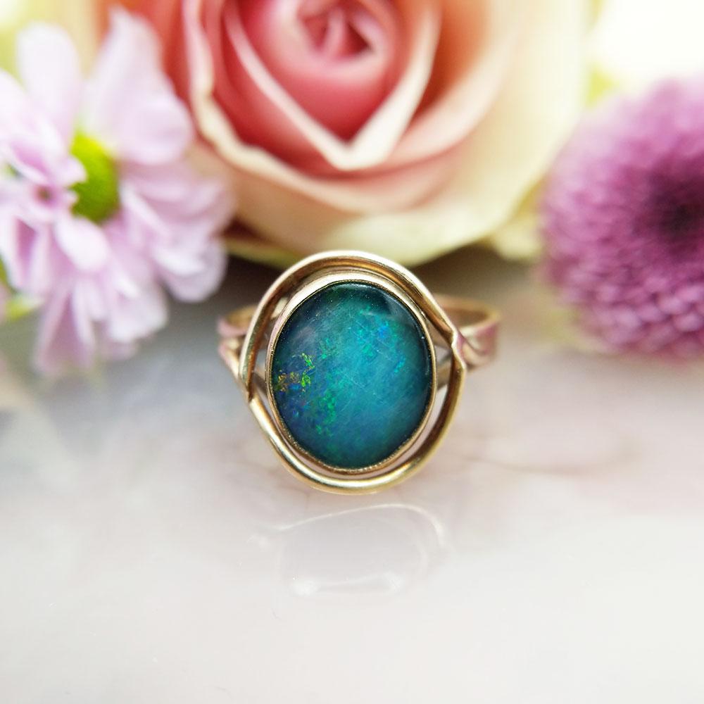 Vintage 9ct Yellow Gold Opal Triplet Ring in the Art Nouveau Style