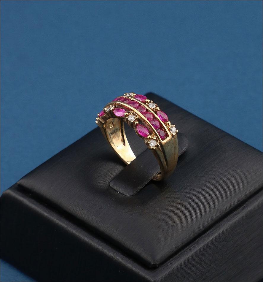 Vintage 9K Gold Ring with Natural Rubies and Genuine Diamonds