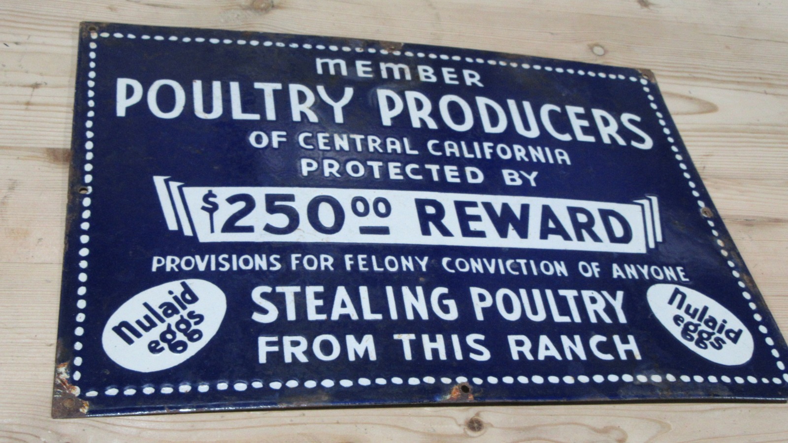 Vintage American Poultry Theft Warning Enamel Sign