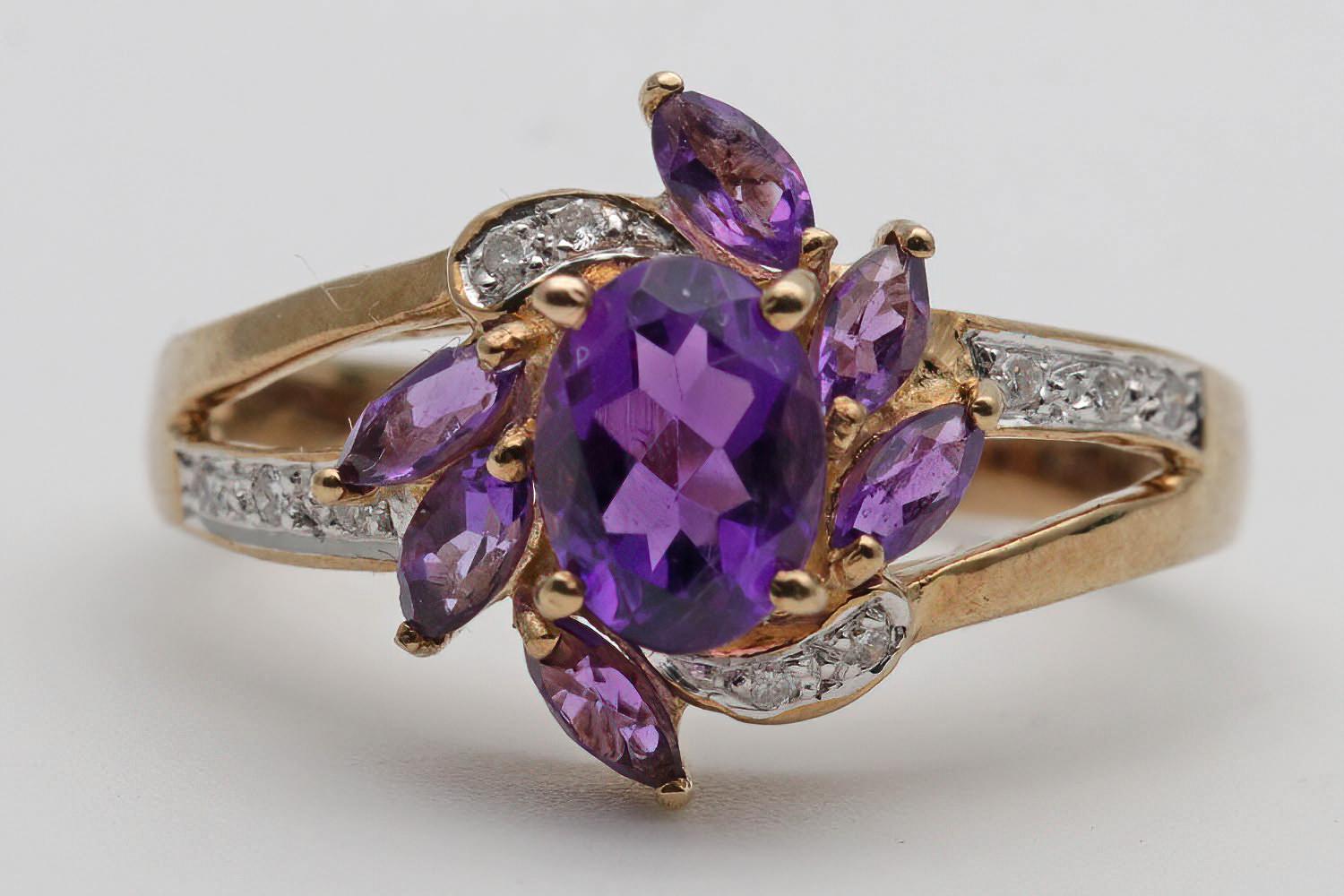 Vintage amethyst and diamond gold dress ring