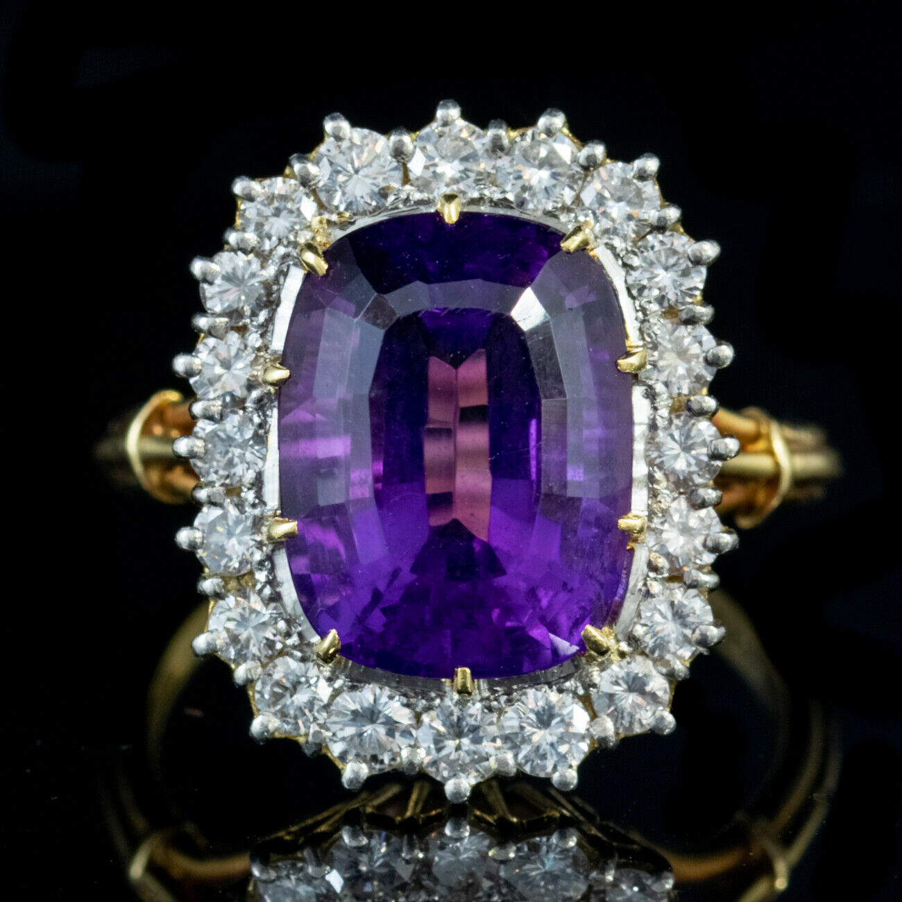 Vintage Amethyst Diamond Ring 18ct Gold 6ct Dated 1974