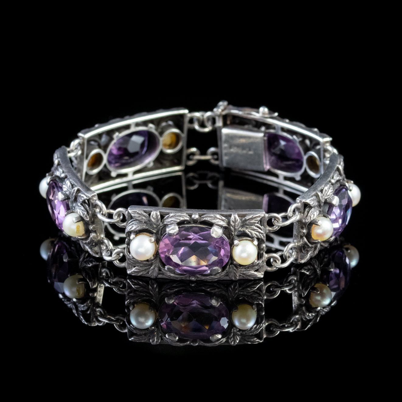 Vintage Amethyst Pearl Bracelet Sterling Silver Dated 1963