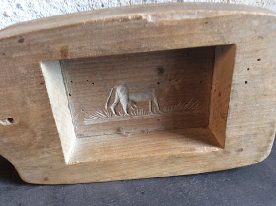 Vintage Antique French Fruitwood Butter Mould Cow