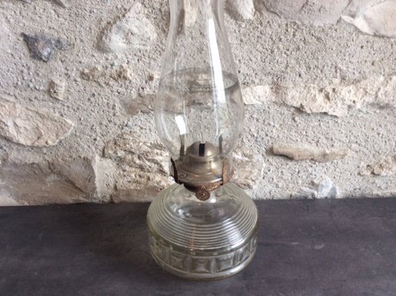 Vintage Antique French Oil Lamp with Moulded Glass Reservoir Perfect Condition and Working
