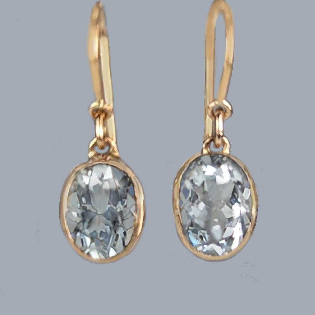 Vintage Aquamarine 9ct Gold Drop Earrings Aquamarine 1960s Dangle Earrings (1 of 5)