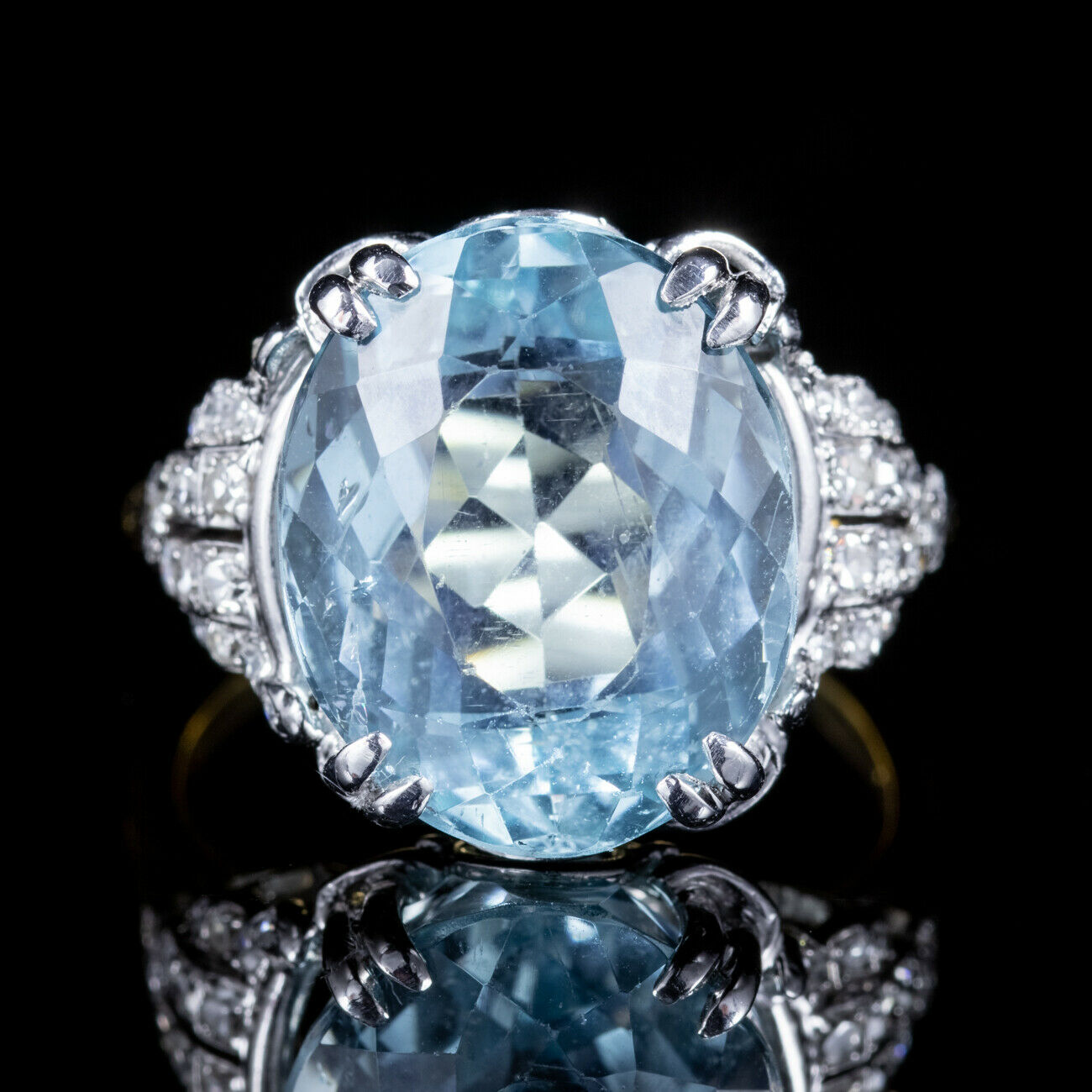 Vintage Aquamarine Diamond Ring 18ct Gold 13ct Aqua c.1940