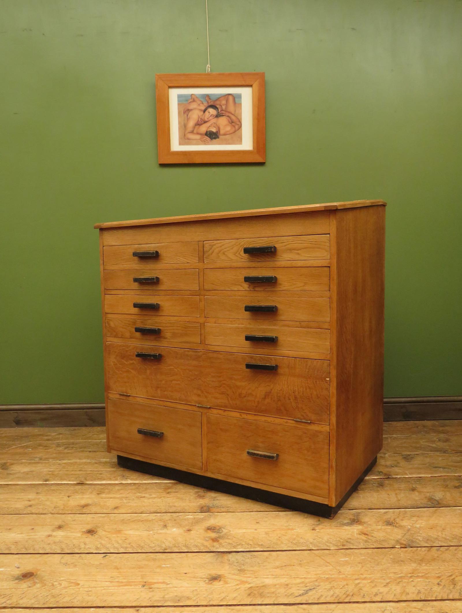 Vintage Architects Plan Chest, Artists Chest with Sloped Lid and Drawers