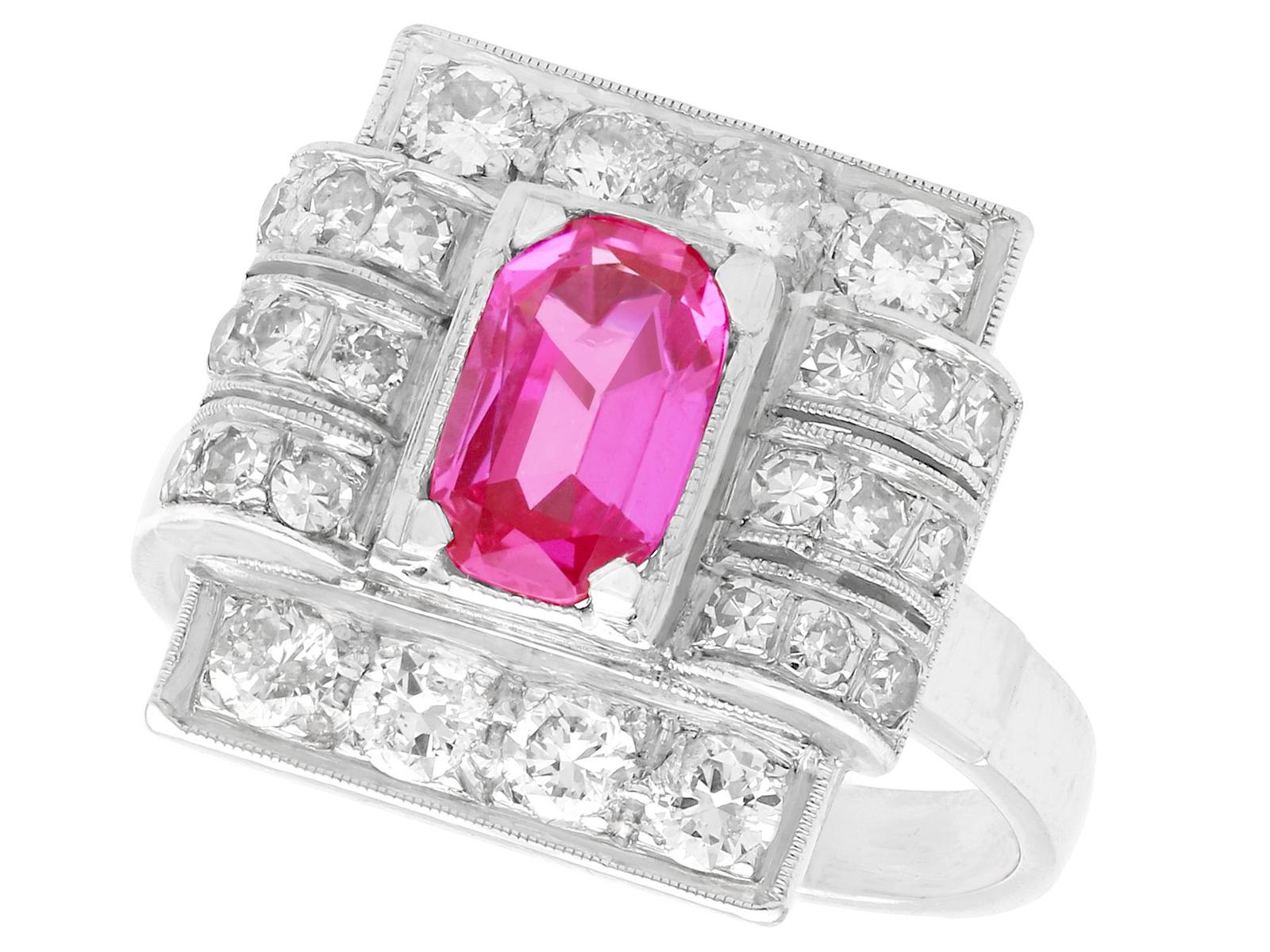 Vintage Art Deco 1.45ct Pink Sapphire and 0.96ct Diamond, 18ct White Gold and Platinum Dress Ring (1 of 9)