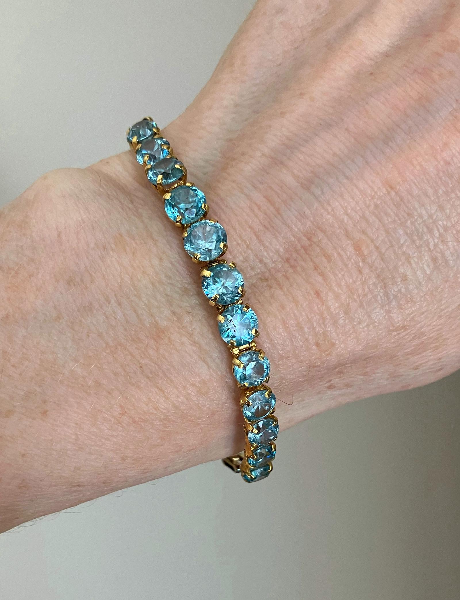 Vintage Art Deco 14ct Gold Blue Zircon Bracelet