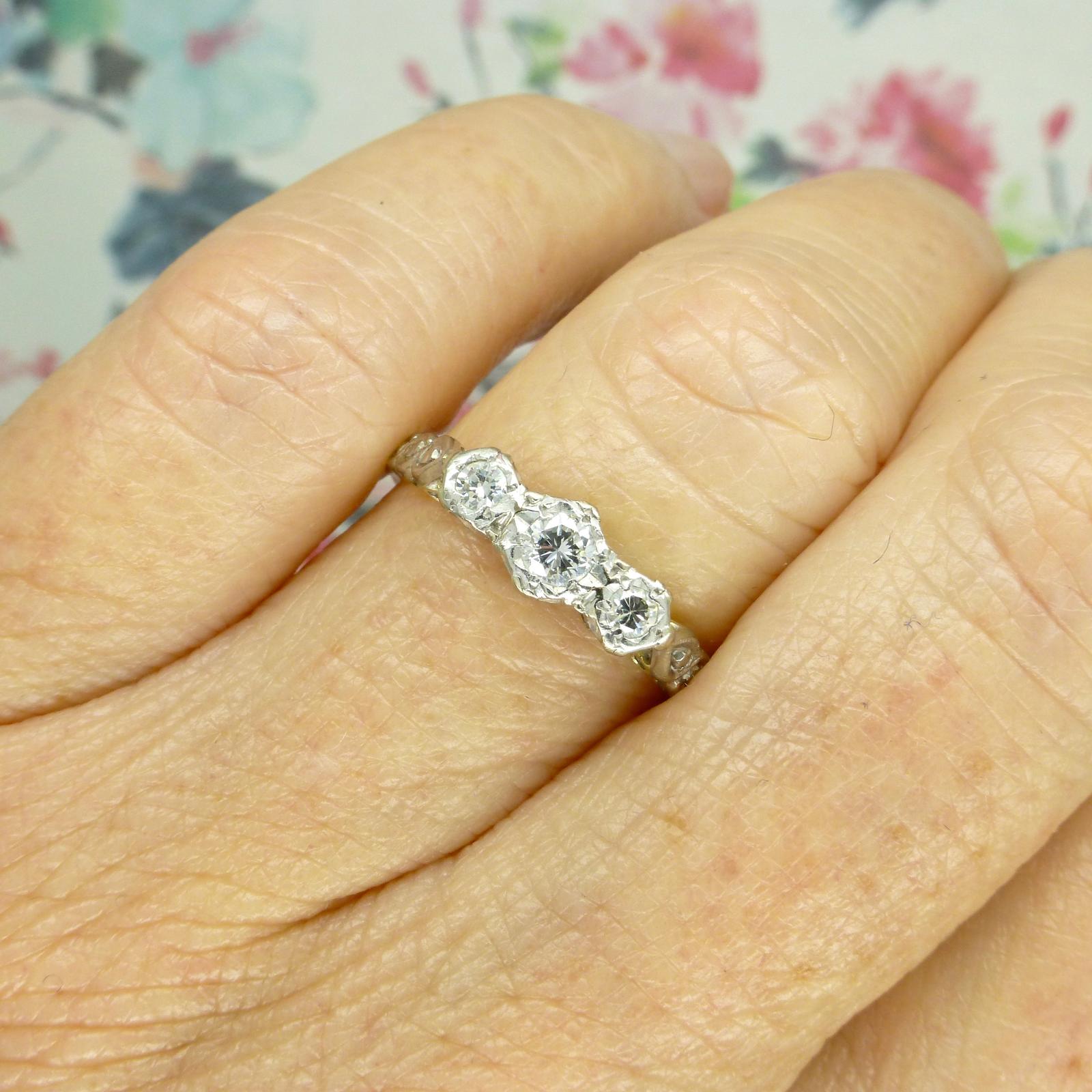 Vintage Art Deco 18ct Platinum Diamond Three Stone Trilogy Ring 1950s