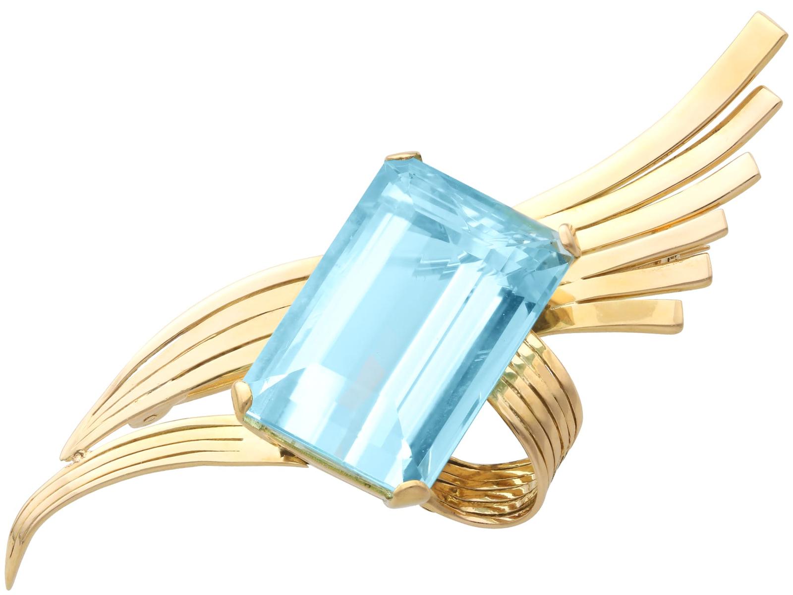A stunning, fine and impressive vintage Art Deco 32.27 carat aquamarine and 18 karat yellow gold brooch; part of our vintage aquamarine brooch collection.