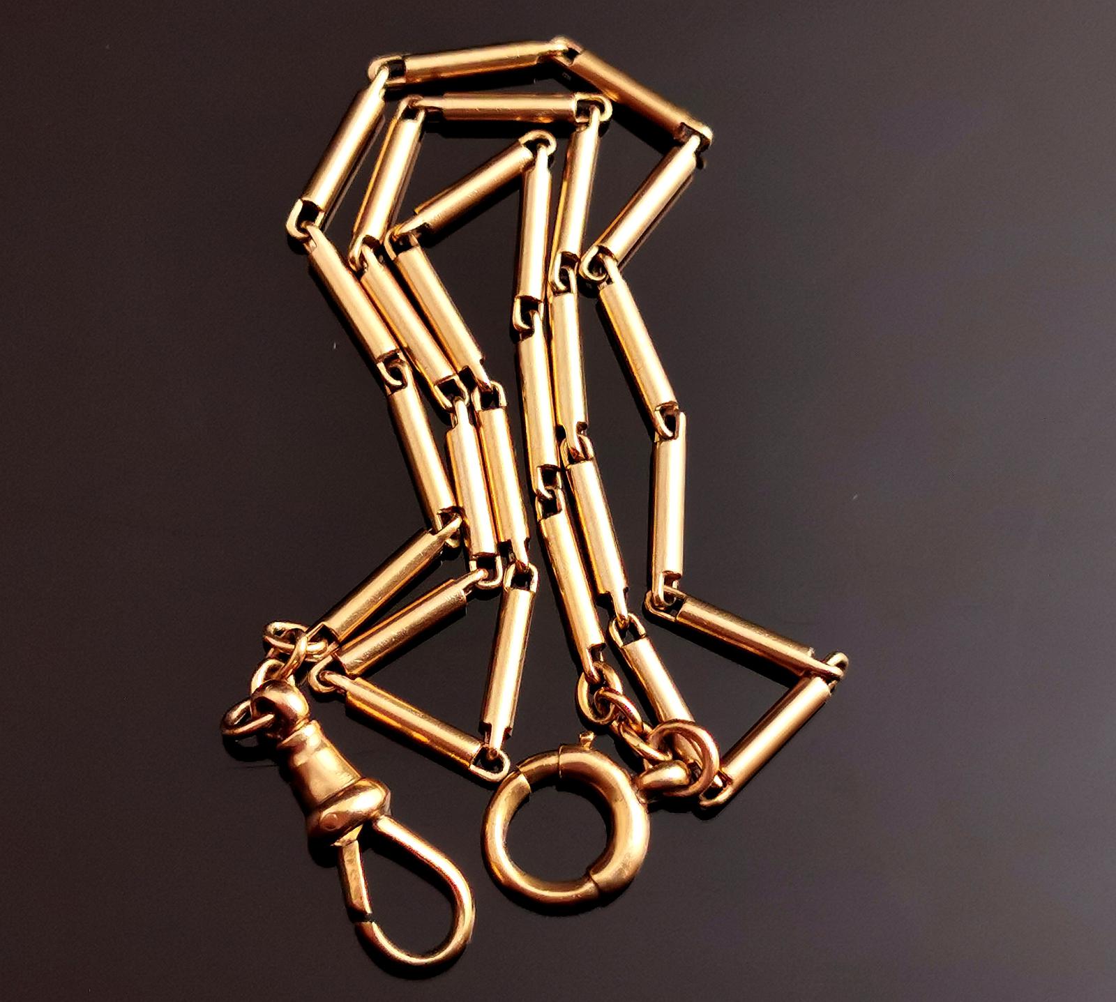 Vintage Art Deco 9ct Gold Bar Link Watch Chain, Albert Chain