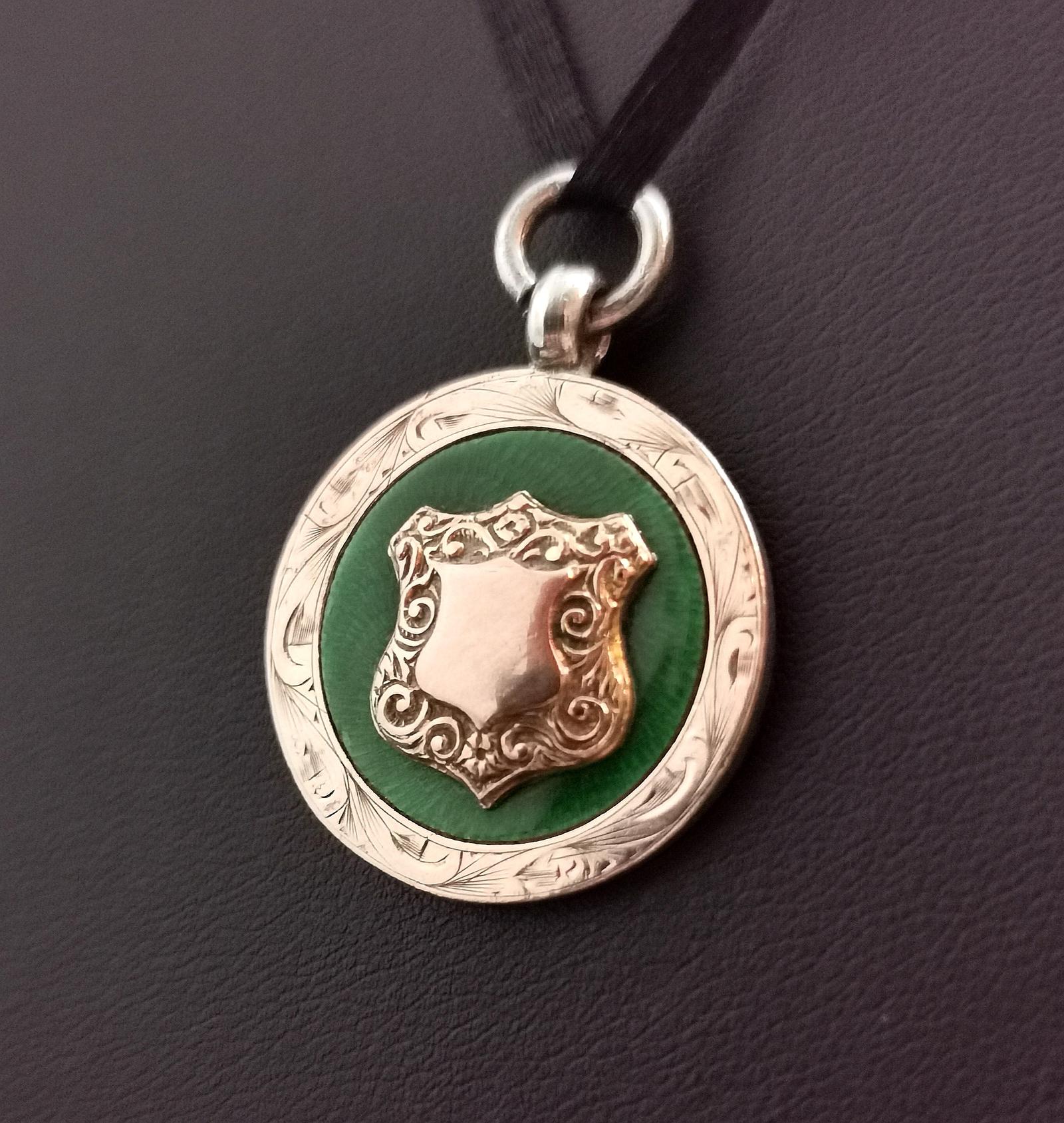 Vintage Art Deco 9ct Rose Gold, Enamel & Silver Fob Pendant