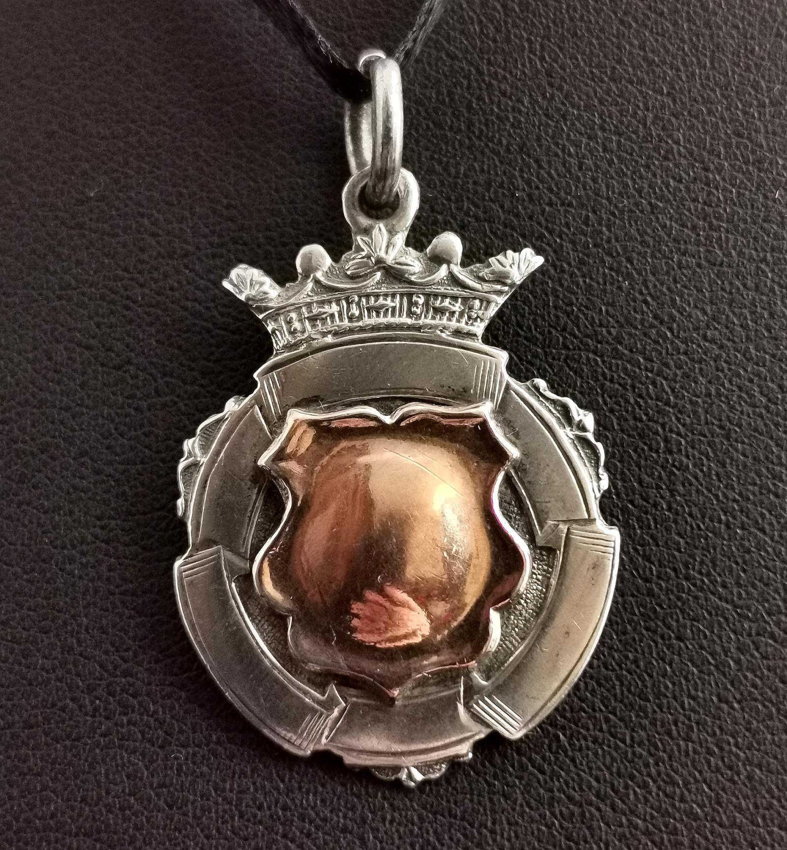 Vintage Art Deco 9ct Rose Gold & Sterling Silver Fob Pendant, Watch Fob