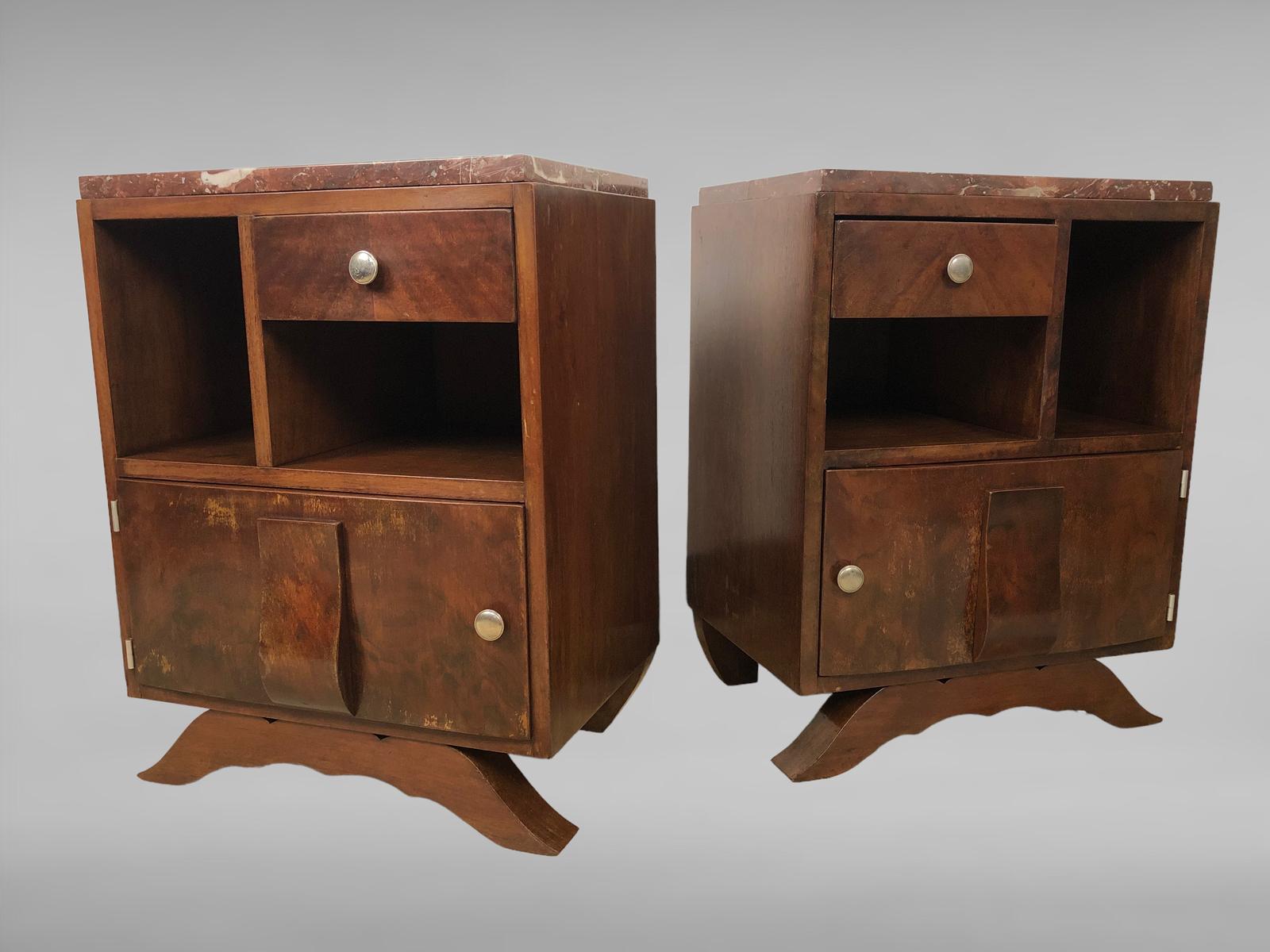 Vintage Art Deco French Bedside Tables Cabinets Marble Top
