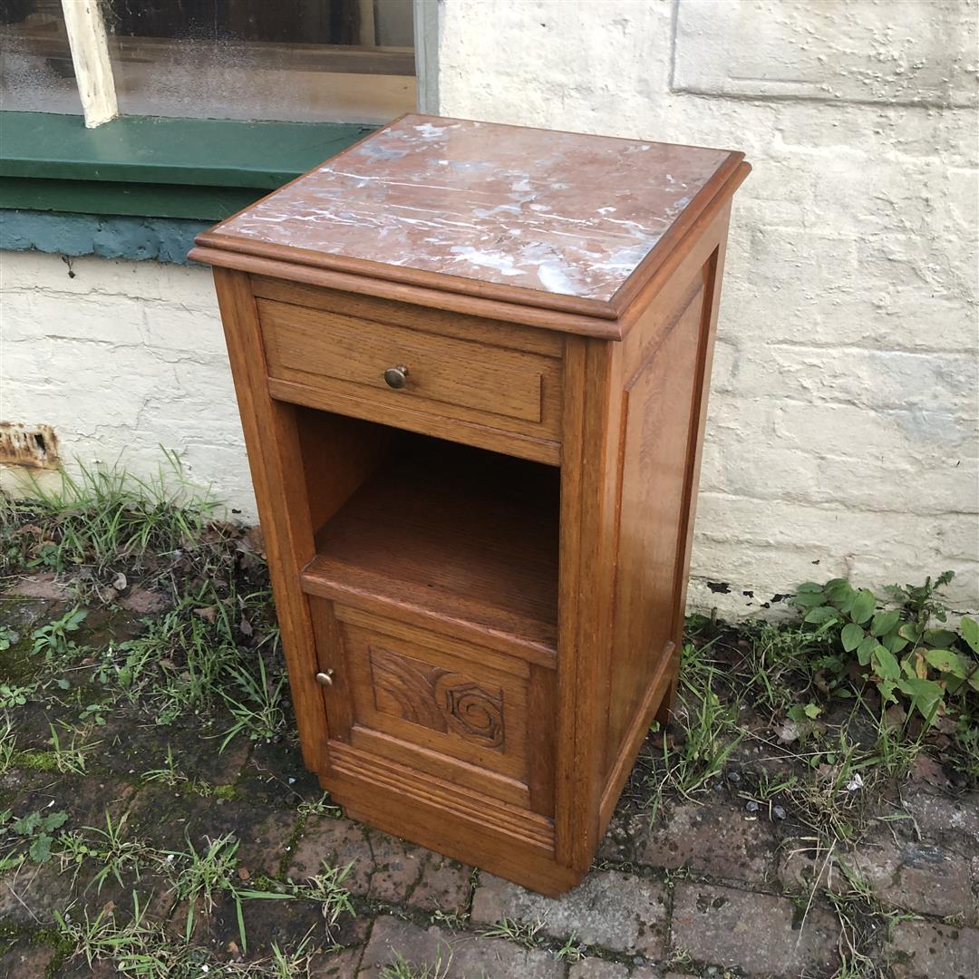 Vintage Art Deco French Oak Bedside Table with Marble Top (1 of 8)