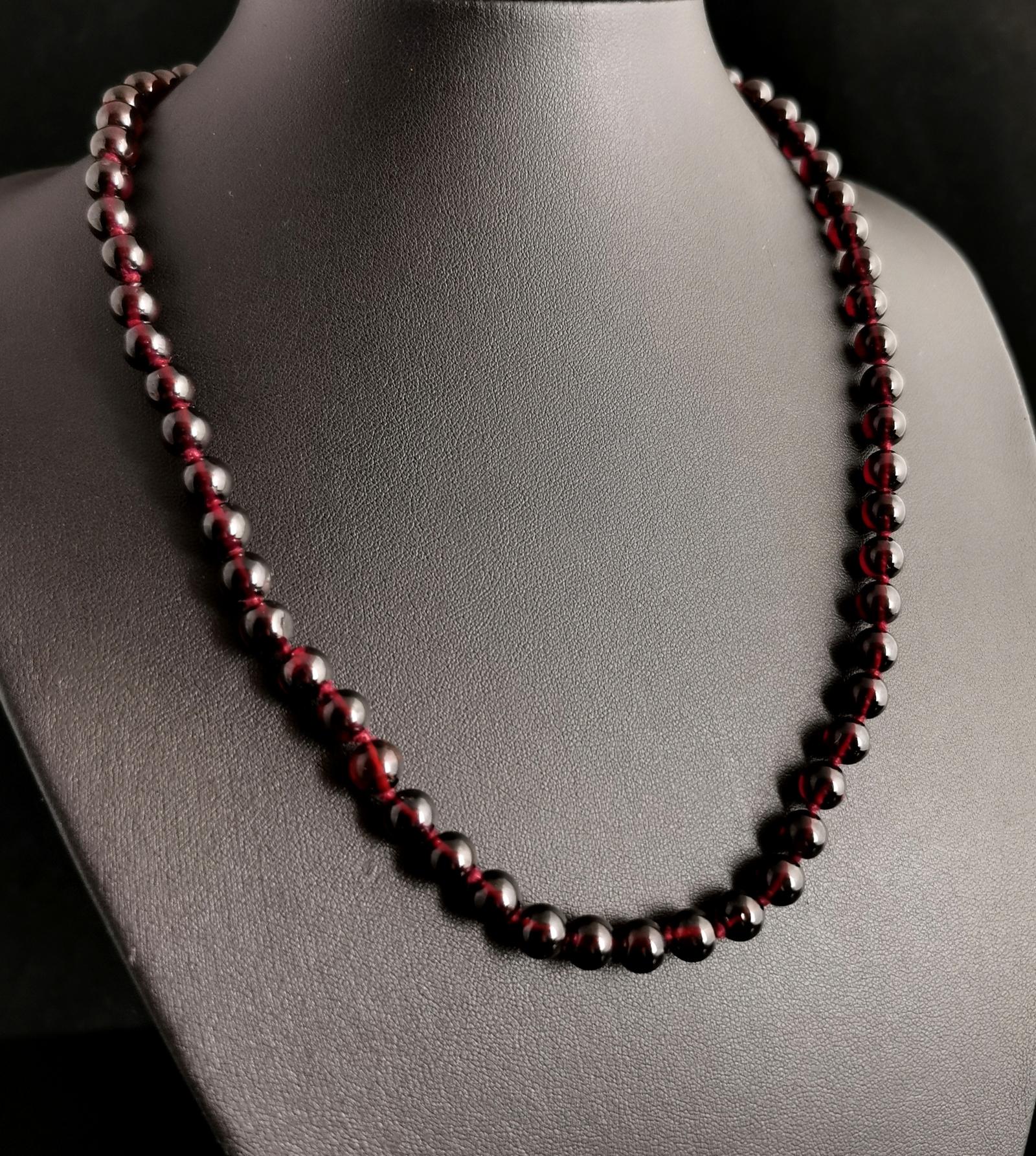 Vintage Art Deco Garnet Bead Necklace, 10k Gold Clasp