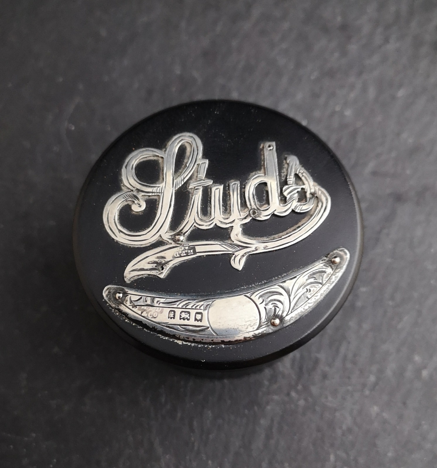 Vintage Art Deco Gents Ebony Stud Box, Silver Mounted