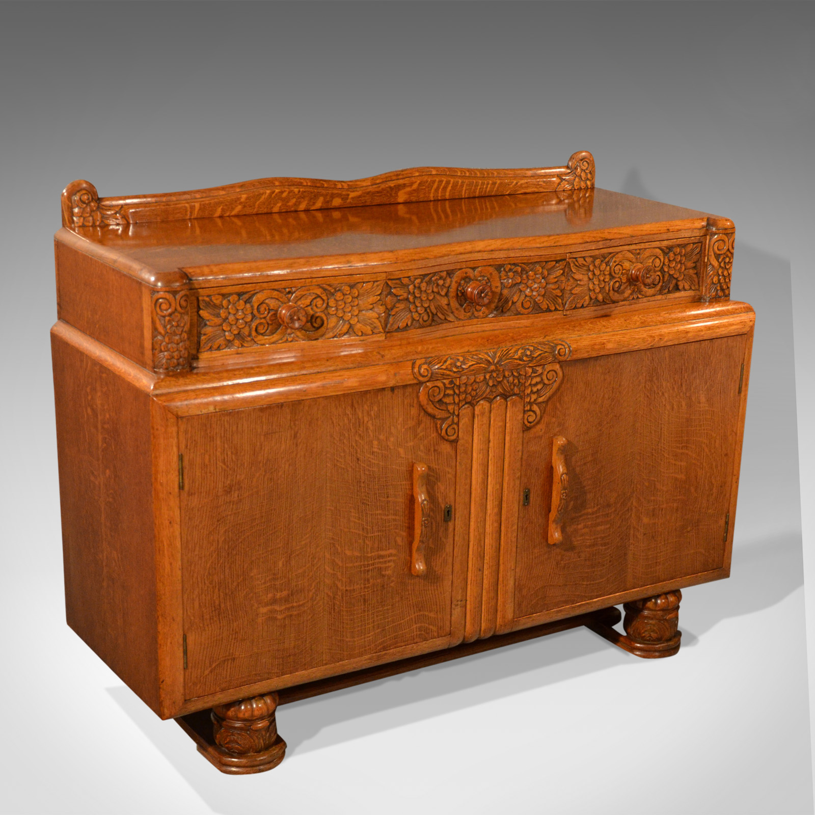 Vintage Art Deco Oak Sideboard, English Buffet Cabinet c.1940