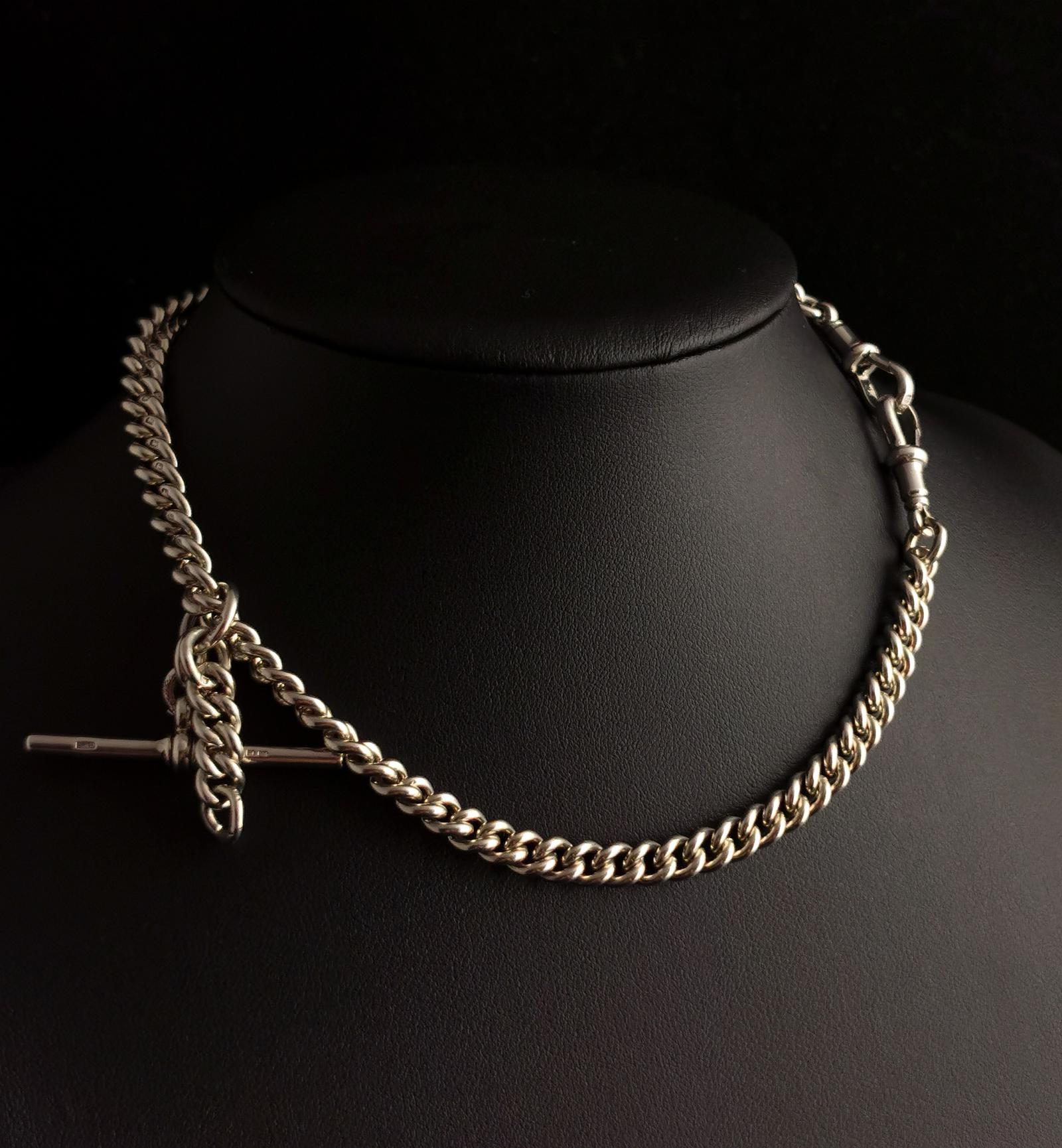 Vintage Art Deco Silver Albert Chain, Watch Chain