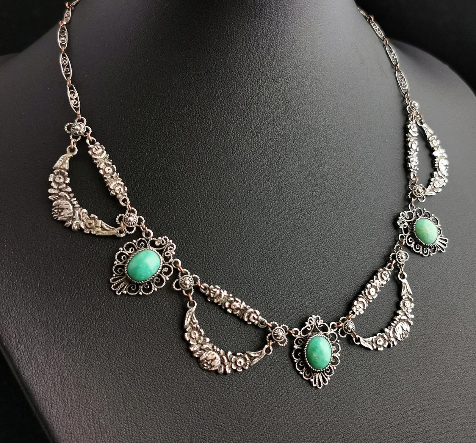Vintage Art Deco Silver & Amazonite Festoon Necklace