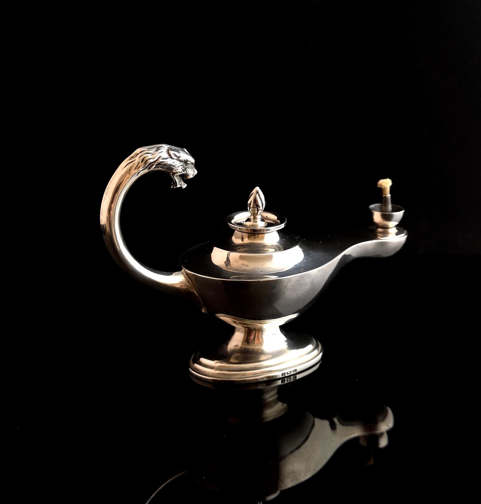 Vintage Art Deco Silver Cigar Lamp, Lion Handle