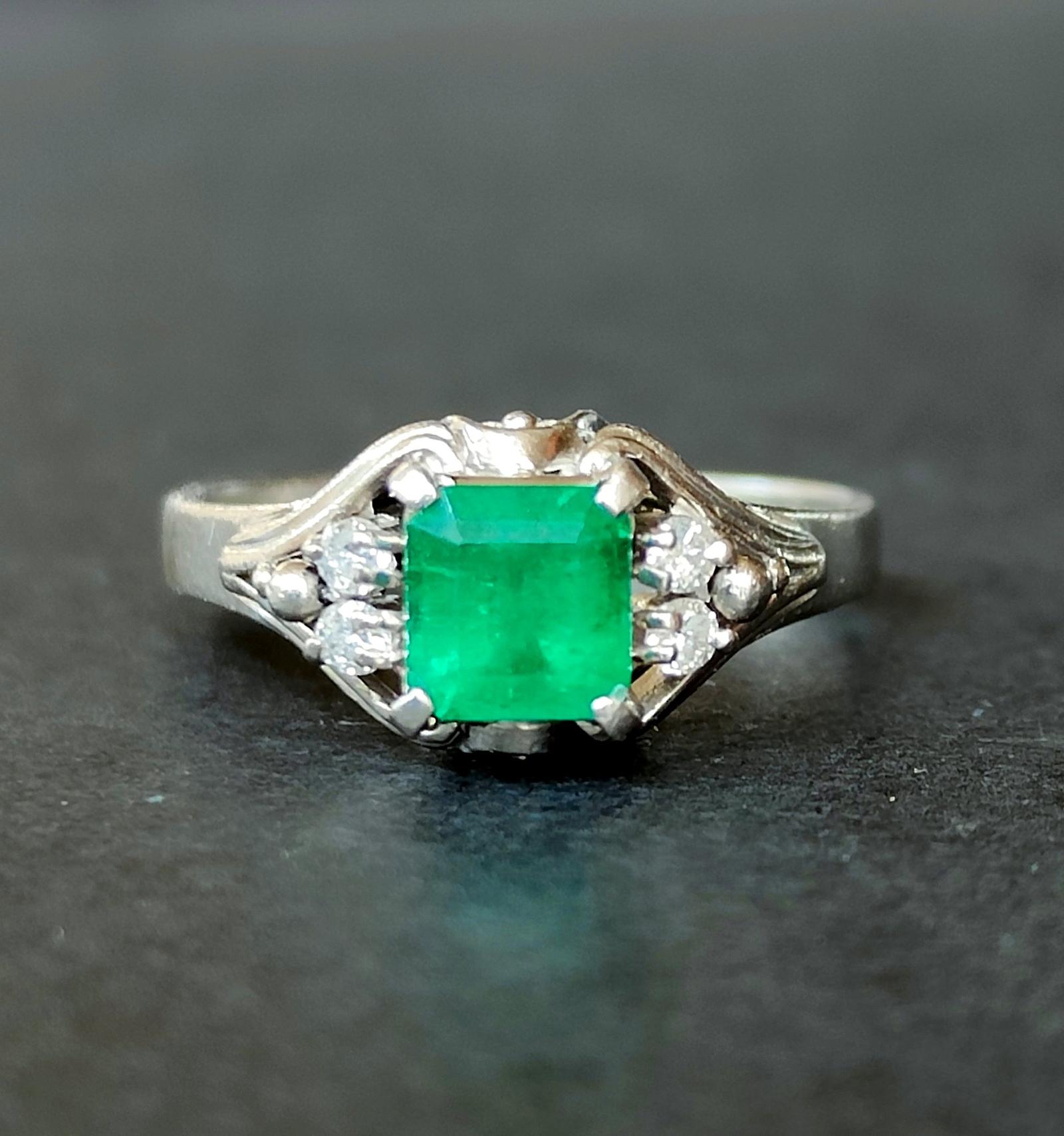 Vintage Art Deco Style Platinum Emerald Solitaire Ring