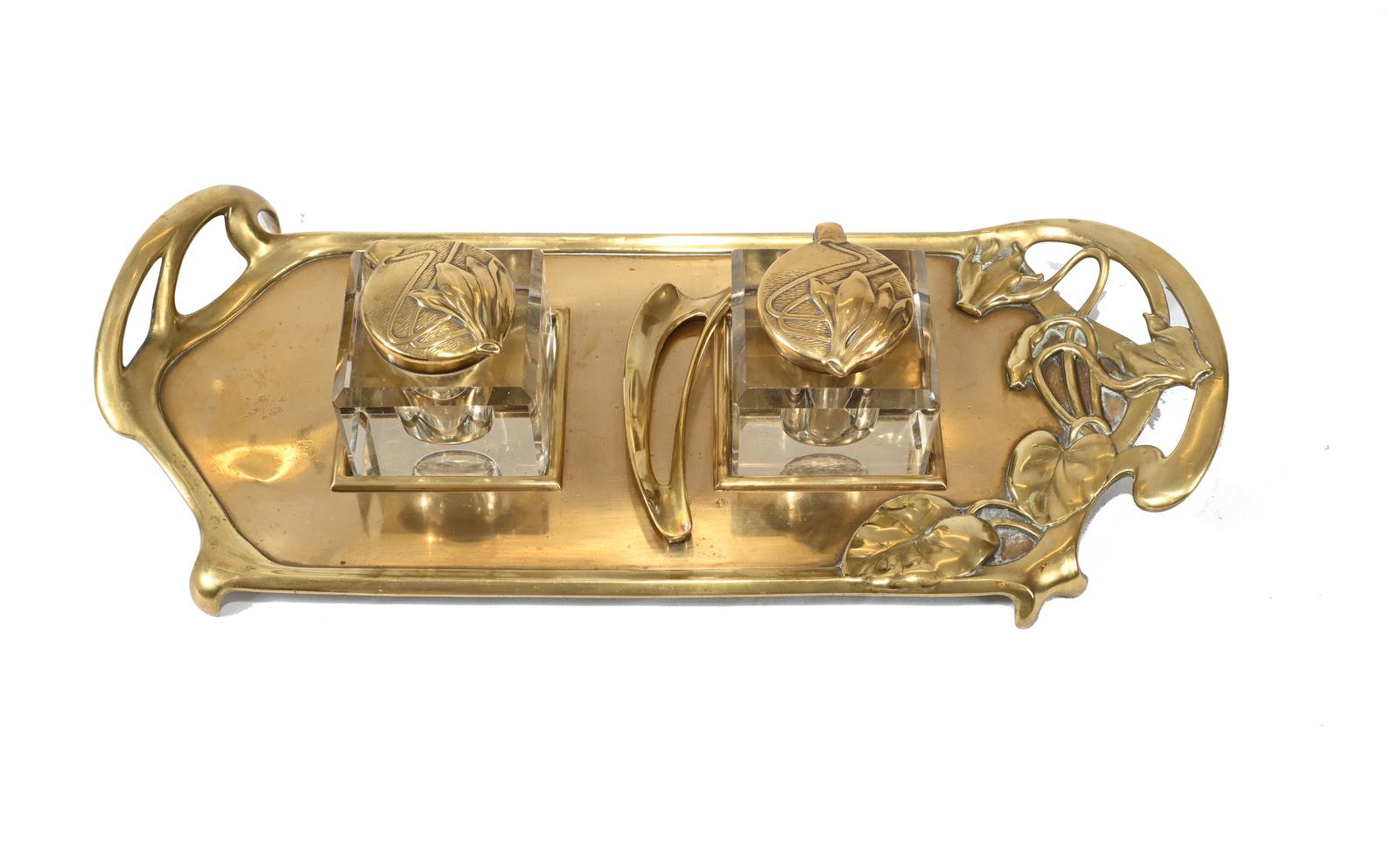 Vintage Art Nouveau Style Inkwell Brass 1930s