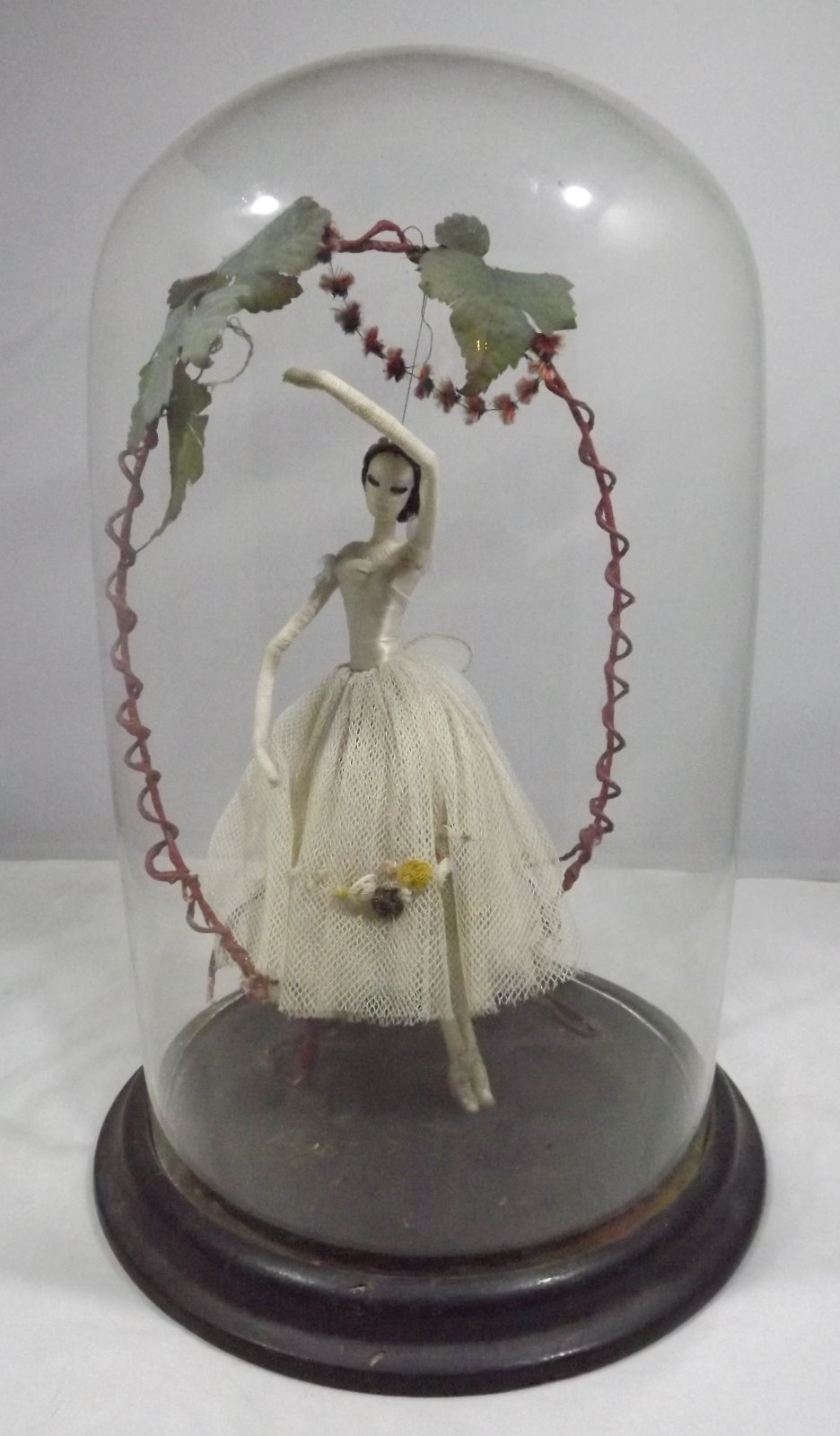 Vintage Ballerina Folk Art Doll in An Antique Glass Dome