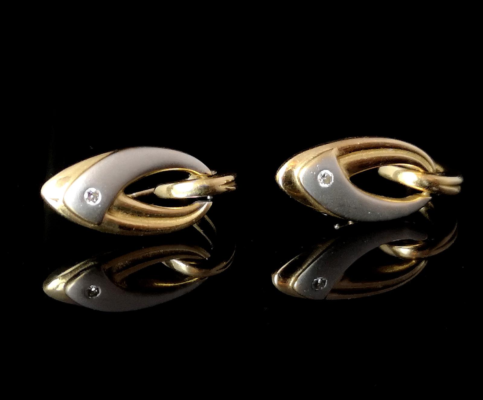 Vintage bi Colour Gold Diamond Earrings, 9ct Gold