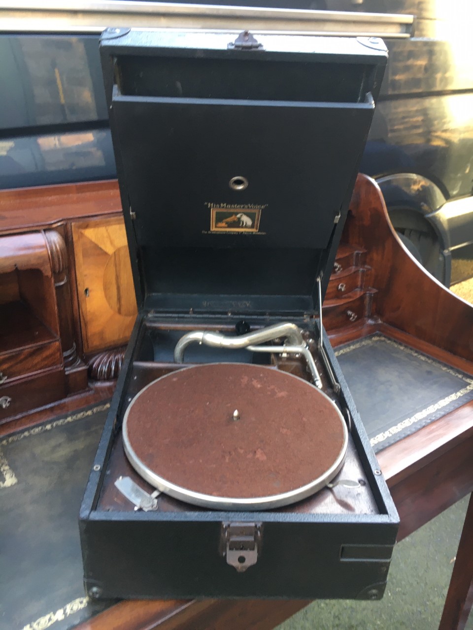 Vintage Black Cased HMV Portable Gramophone