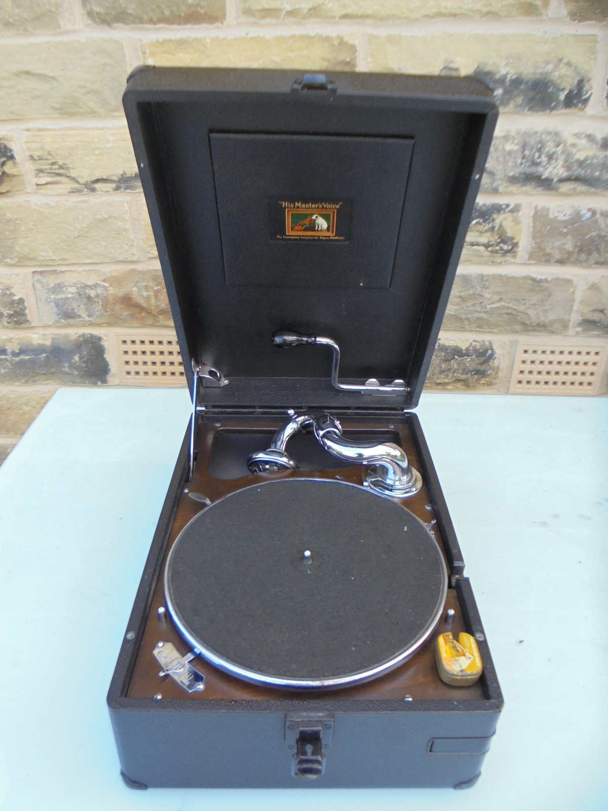 Vintage Black Cased HMV Portable Wind up Gramophone