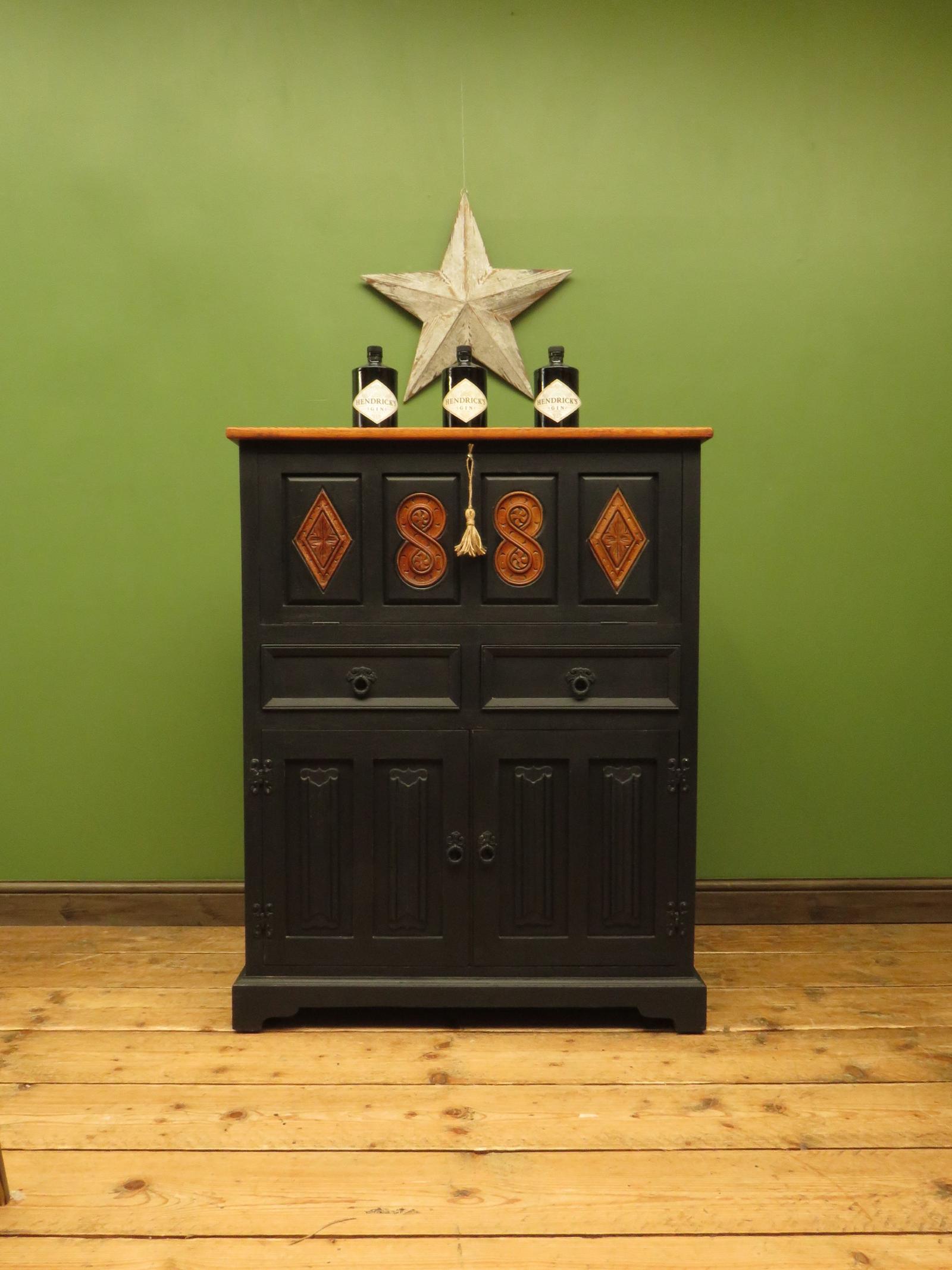 Vintage Black Cocktail Cabinet with Fall Front