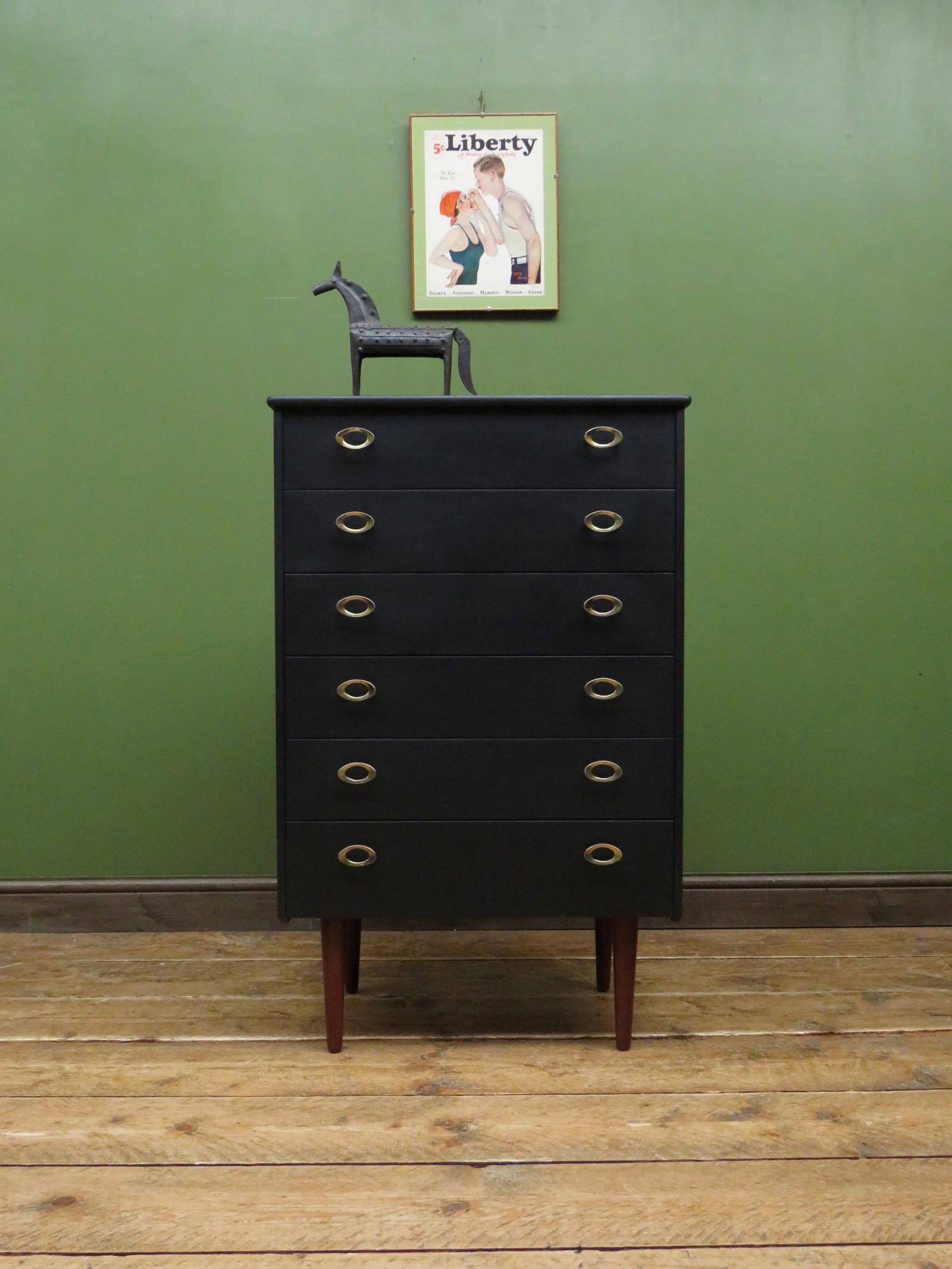 Vintage Black Painted Chest of Drawers, mid century chest of drawers