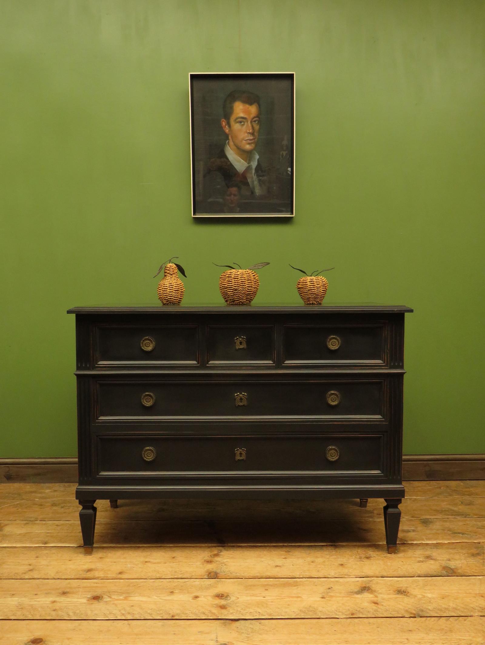 Vintage Black Painted Empire Style French Chest of Drawers