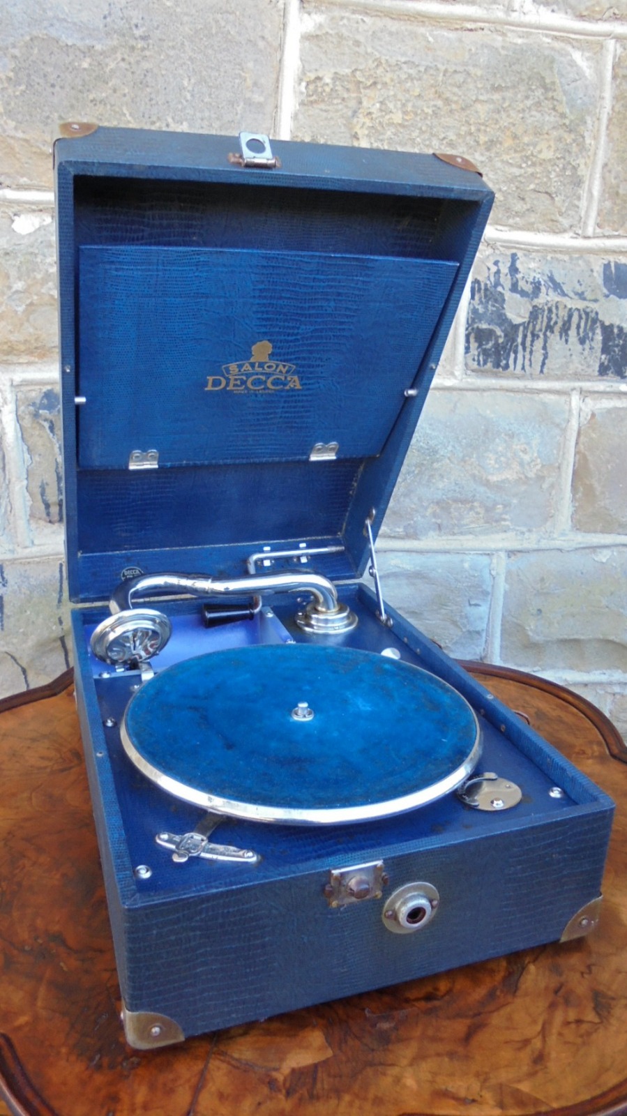 Vintage Blue Cased Decca Portable Gramaphone