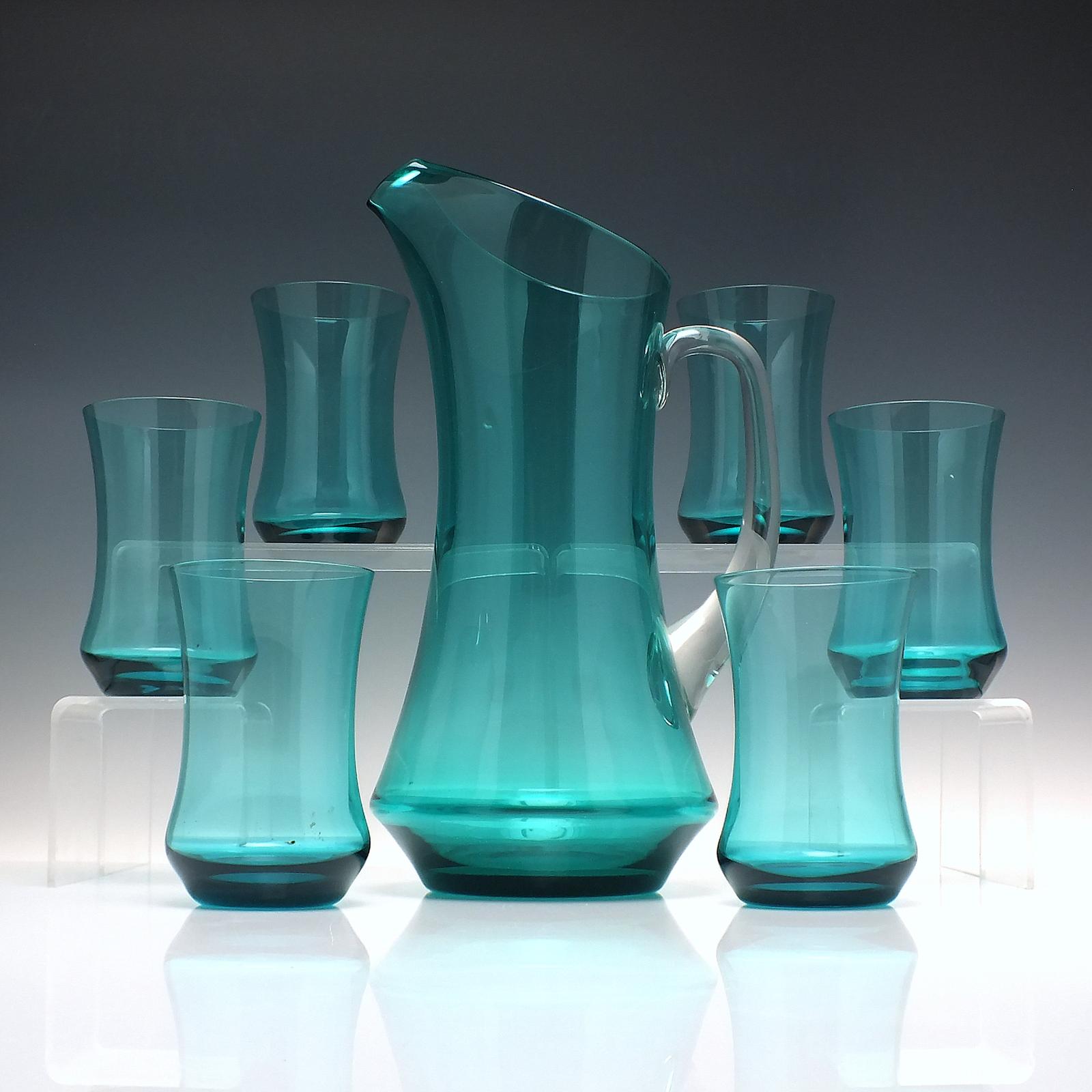 Vintage Blue Lemonade Glass Set, Jug & Six Tumblers c.1960