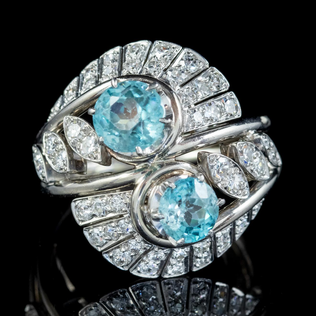 Vintage Blue Zircon Diamond Cocktail Ring 18ct White Gold c.1950
