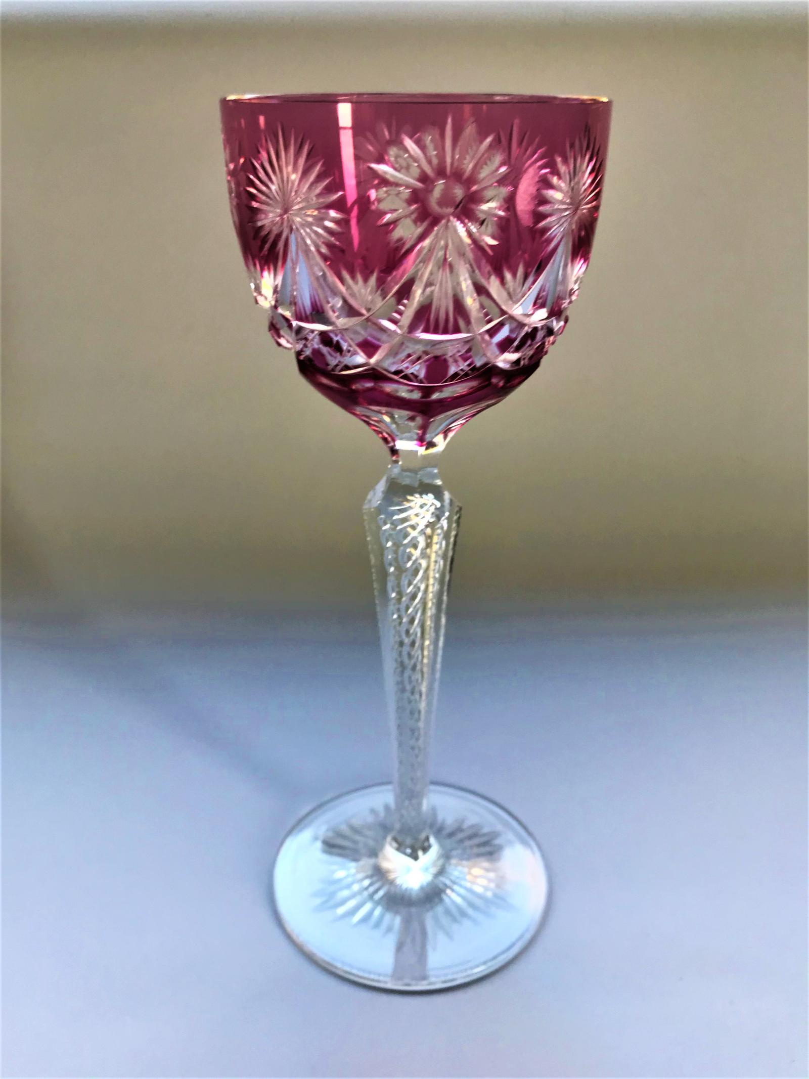 Vintage Bohemian Cranberry Cut Hock Glass (1 of 7)