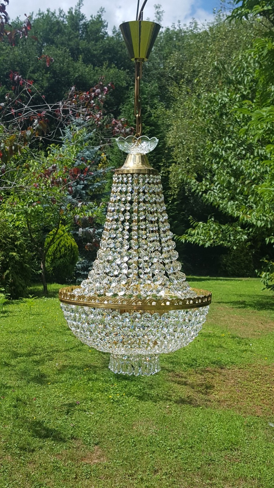 Vintage Bohemian Lead Crystal Empire Chandelier