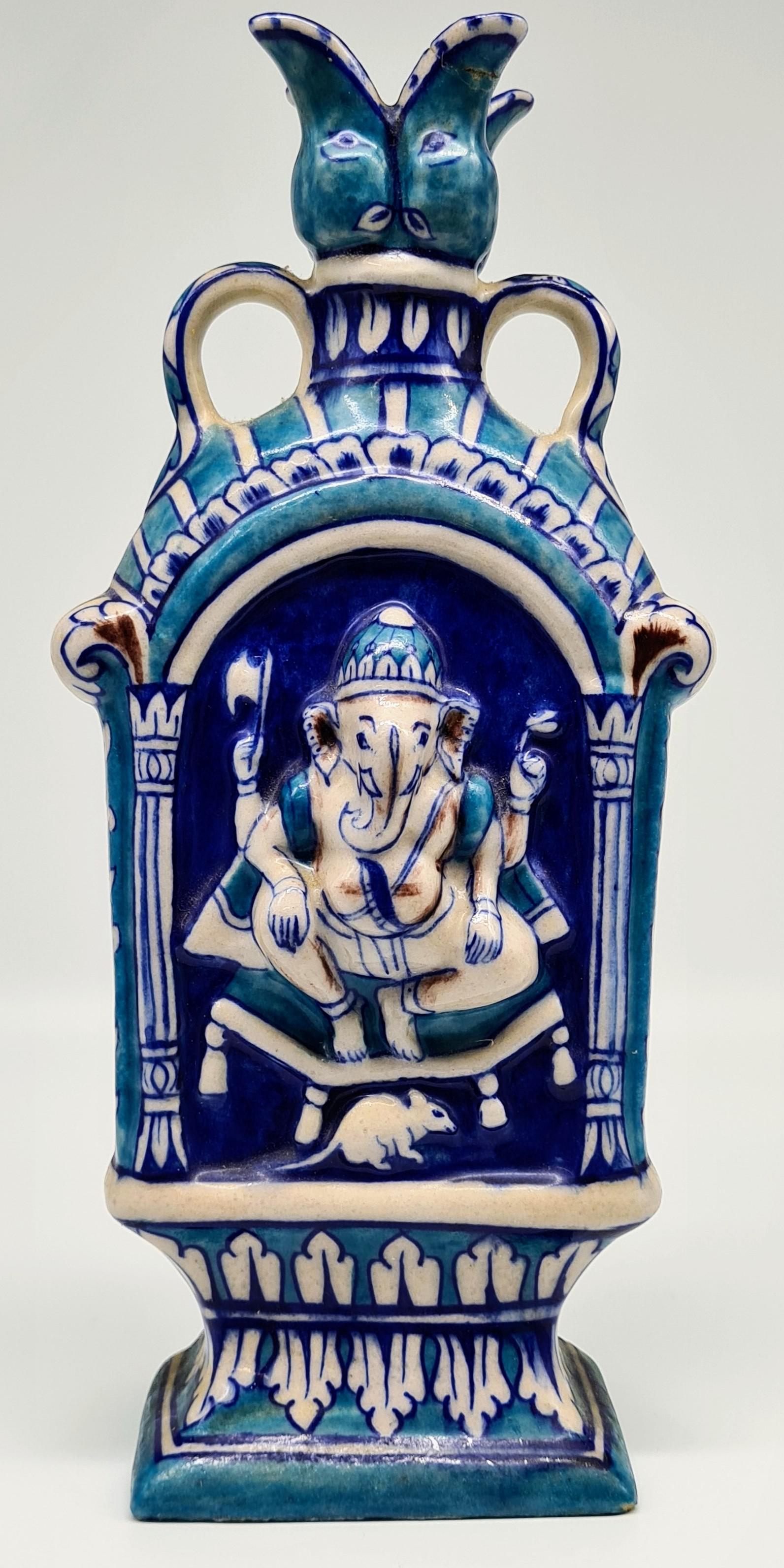 Vintage Bombay Porcelain Vase Featuring Hindu God Ganesh Standing on a Mouse