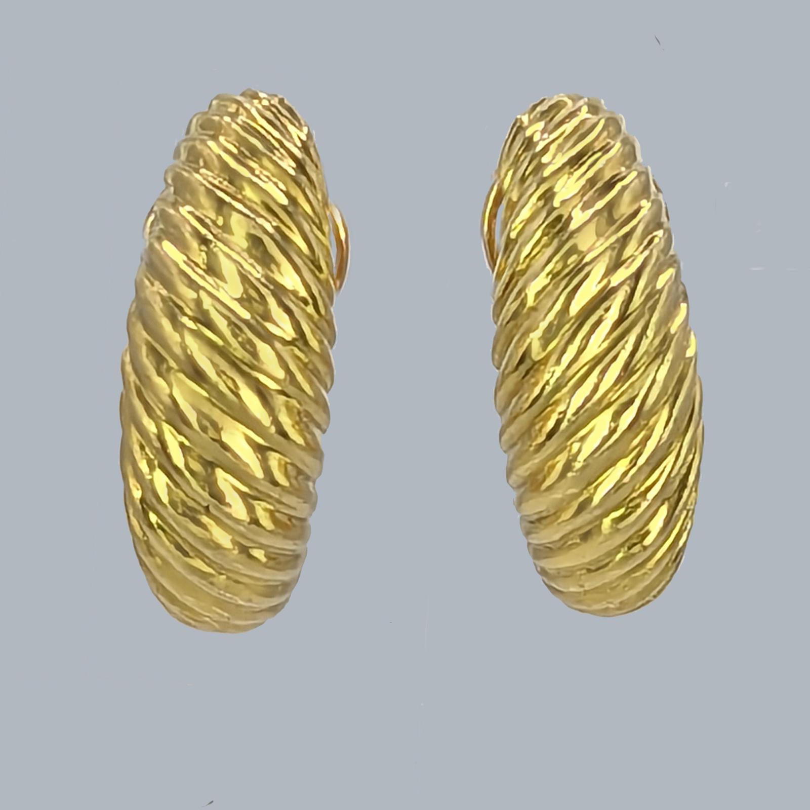 This Vintage Boucheron 18ct Gold Ridged Hoop Clip Earrings French c.1960s with Original Box is located in Greater London, United Kingdom