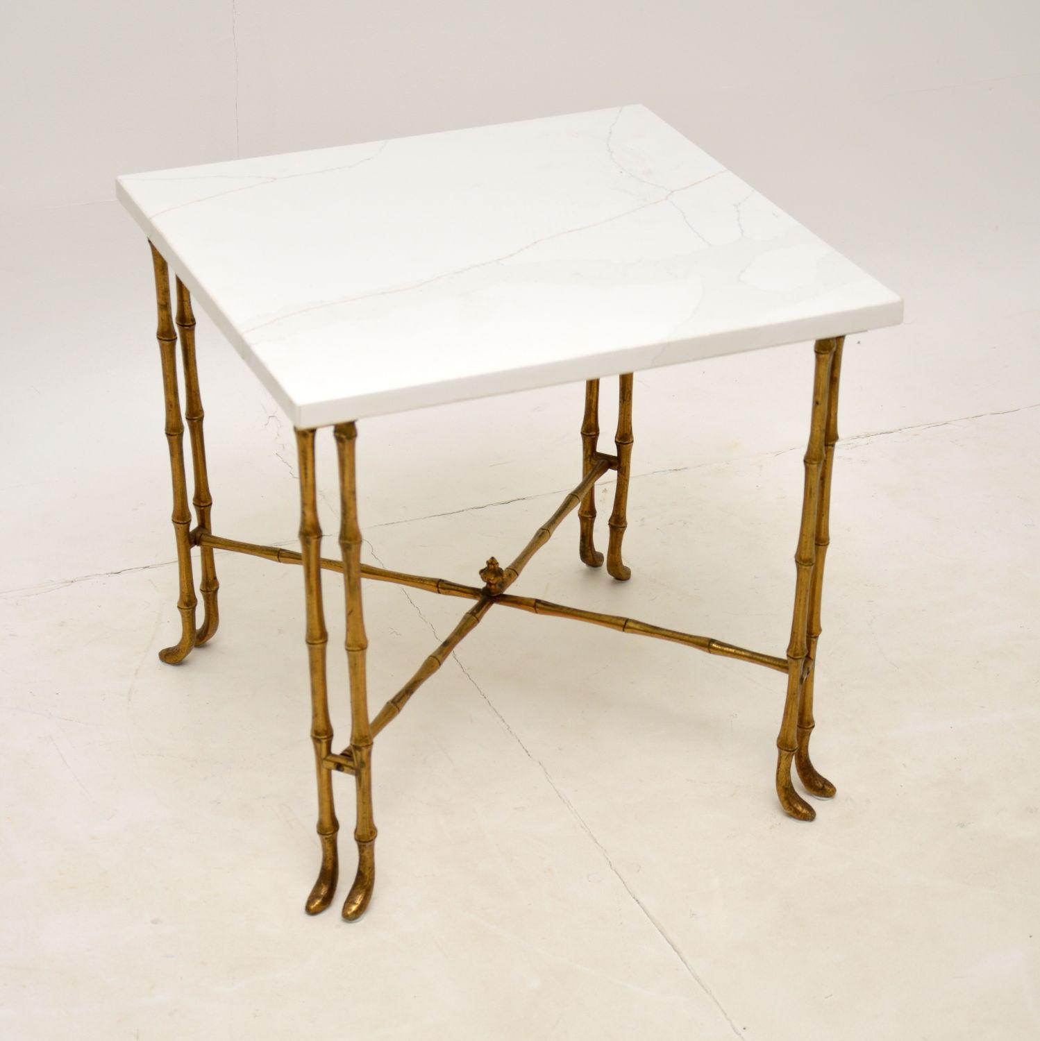 Vintage Brass & White Quartz Side / Coffee Table (1 of 6)